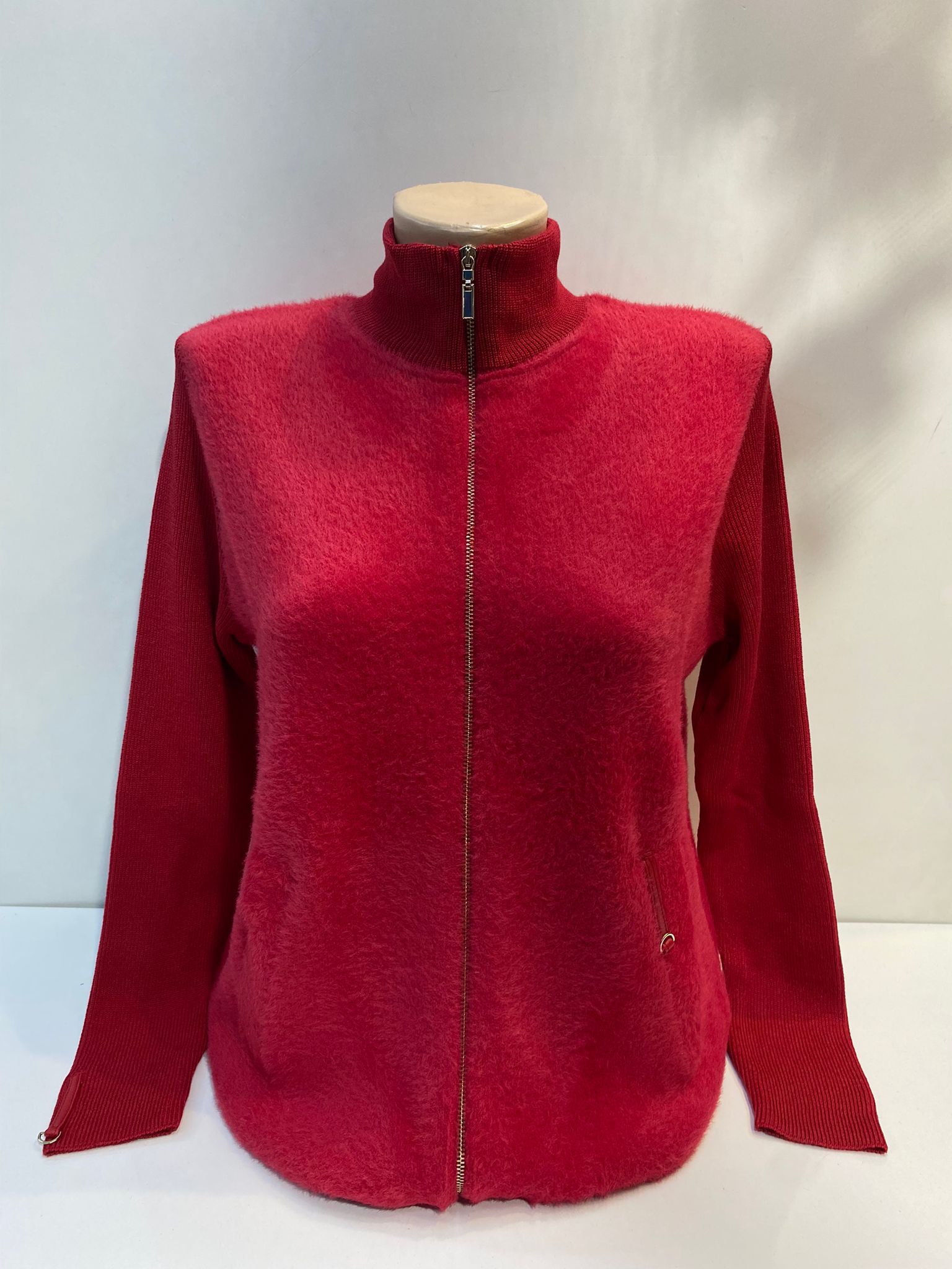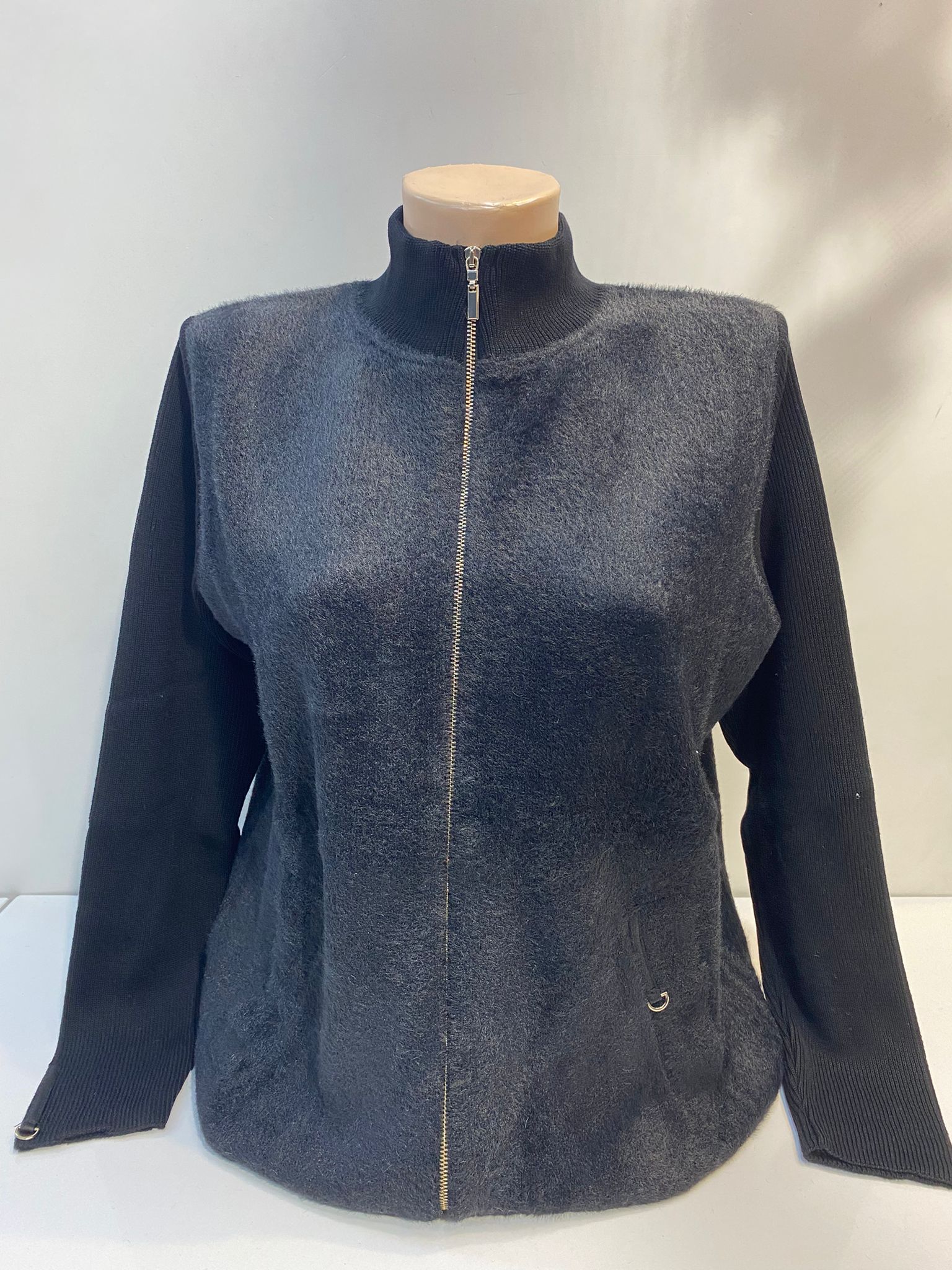 Angora fermuarlı hırka kol triko iplik iki renk mevcut
