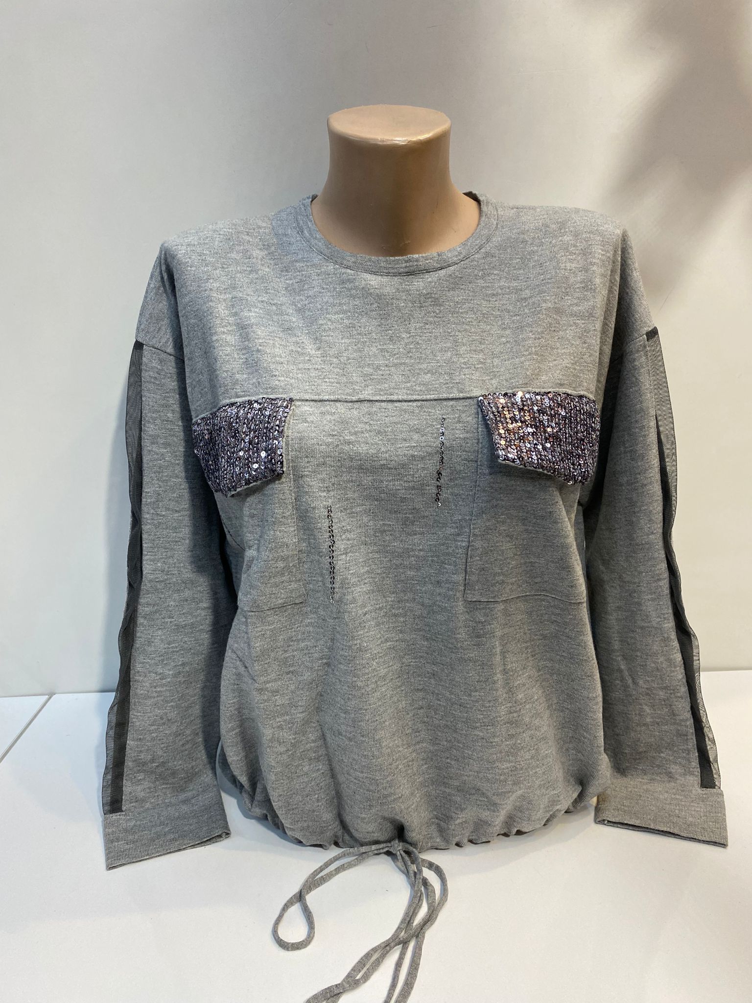 Kol datay cep payetli triko kol tül detay şık spor S 38,40 bedenlere uyumlu hassas programda yıkanabilir