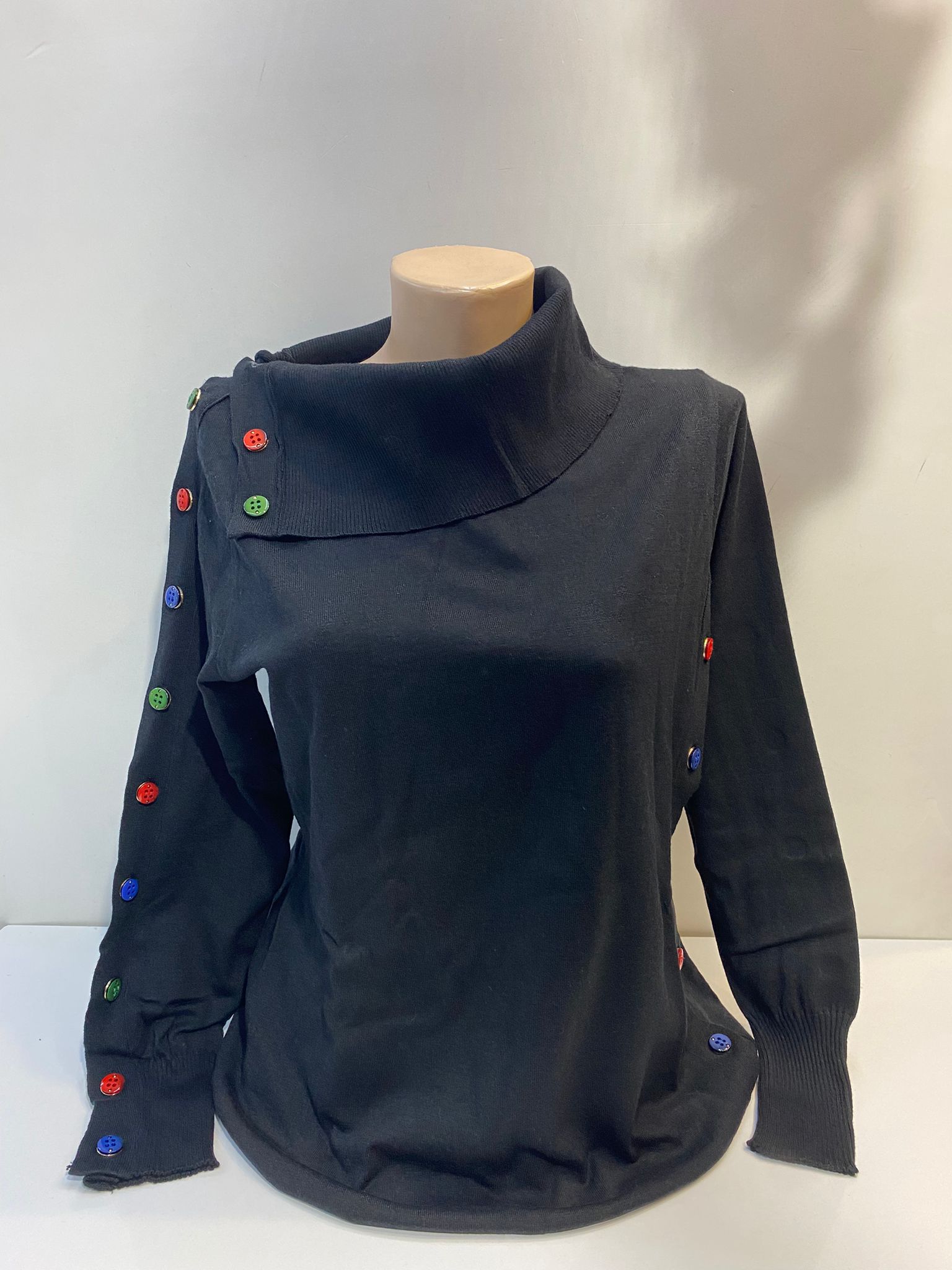 Yaka düğme detay tunik triko yan düğme detay ince iplik şık rahat yıkanabilir