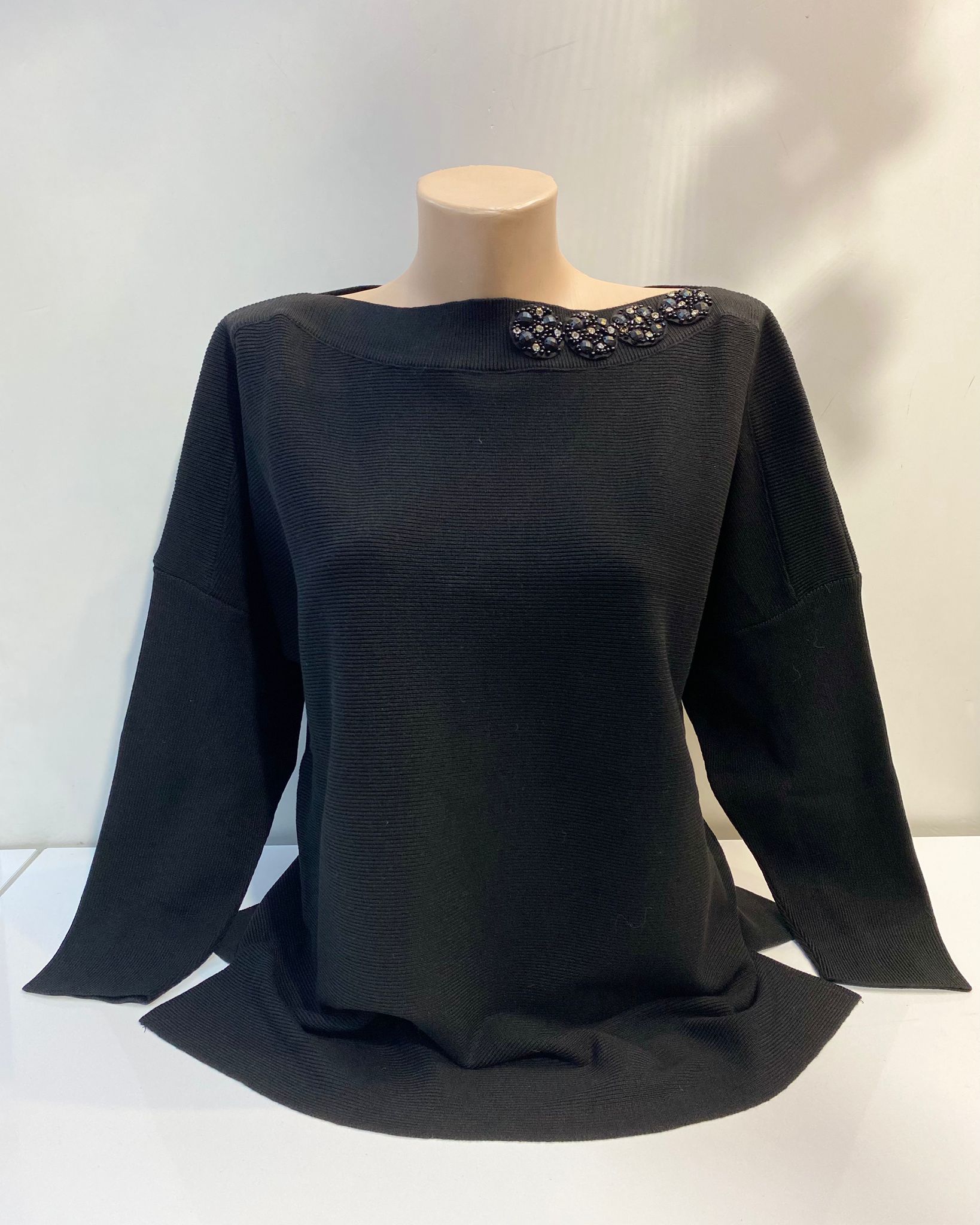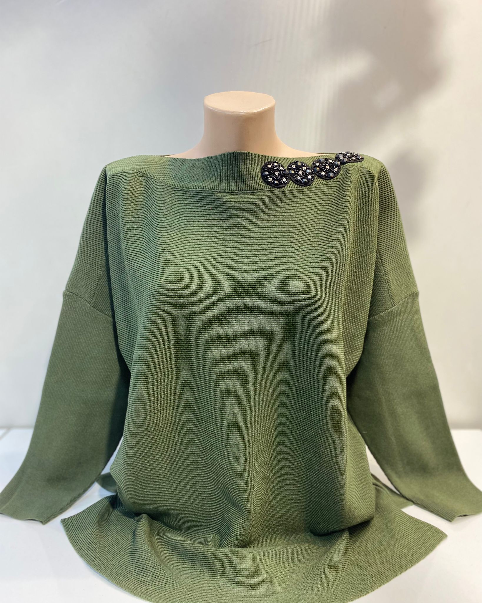 - Model: Kayık yaka tasarımı, boyun bölgesinde zarif bir açılım sağlar.