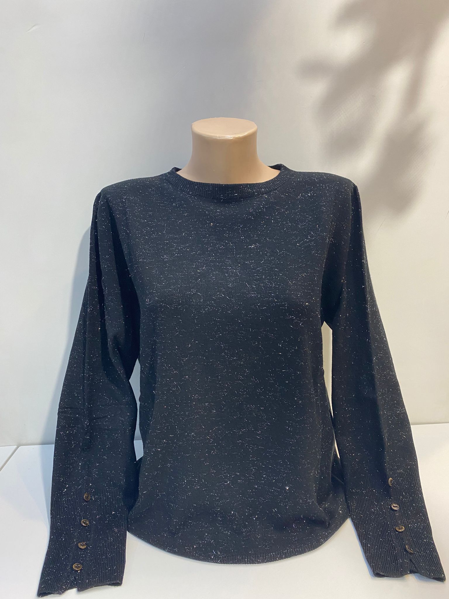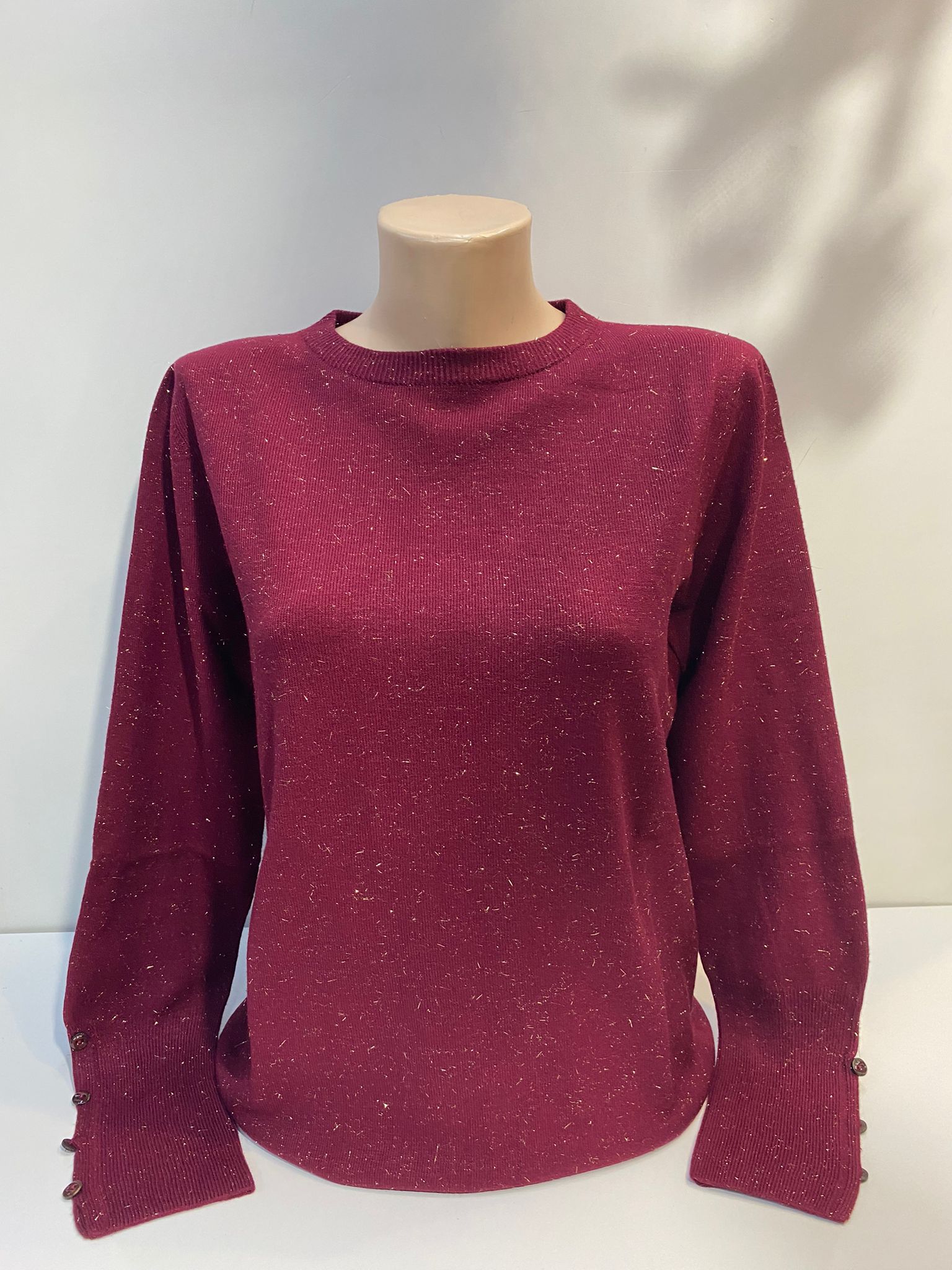 Simli iplik yüksek kalite kol detay triko bluz yhassas programda sıkma devri düşük ayarda yıkanabilir sipariş öncesi renk ve beden teyidi tavsiye edilir. Bordo renk S 38,40 bedenlere uyumlu Siyah renk M 42,44 bedenlere uyumlu Turuncu renk S 38,40 M 42,44 bedenlere uyumlu