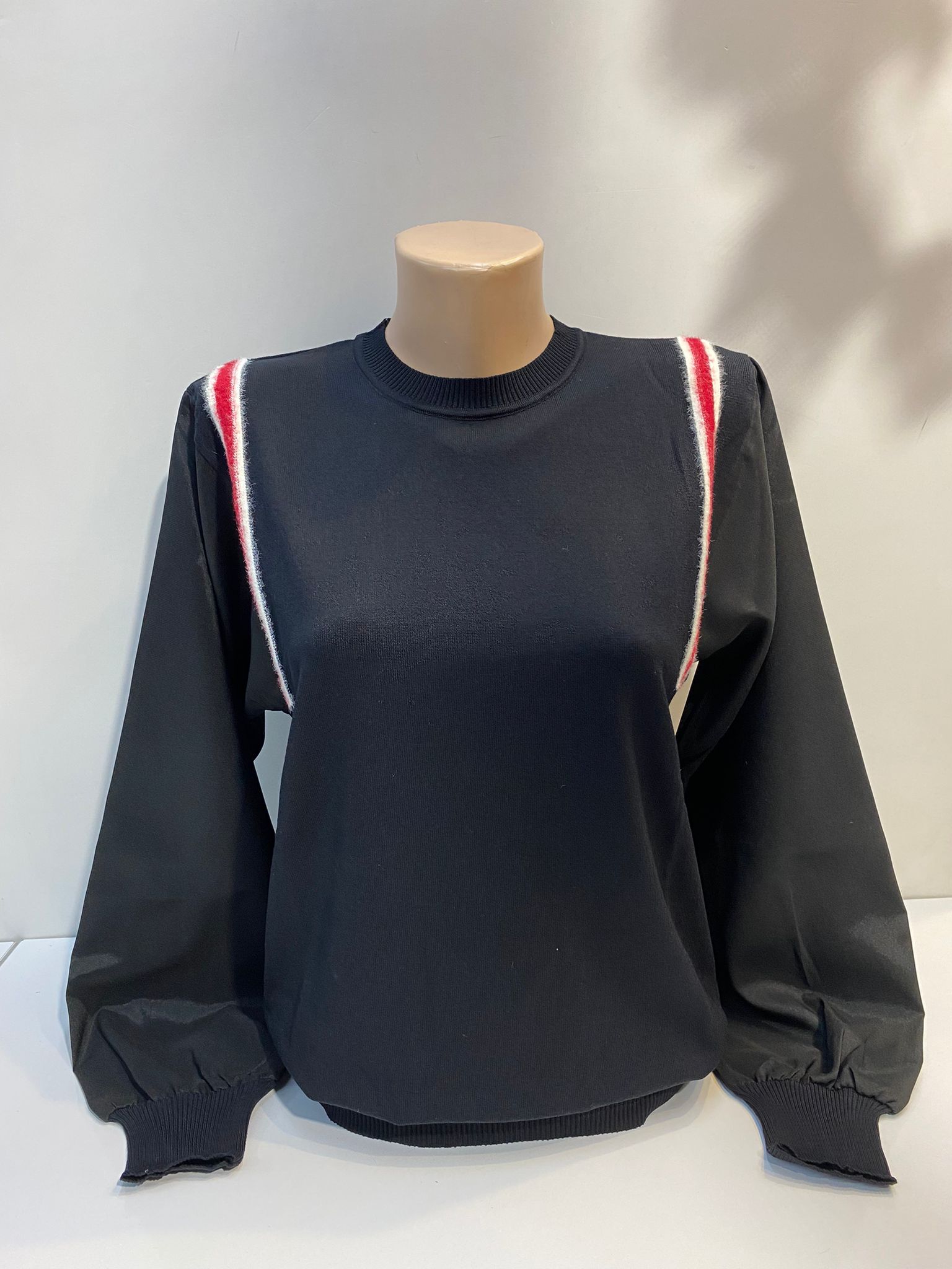 Triko bluz kol saten detay balon kol iki renk hassas programda yıkanabilir sıkma devri düşük ayarda Siyah S 38,40 bedenlere uyumlu Bordo S 38,40 M 42,44 bedenlere uyumlu