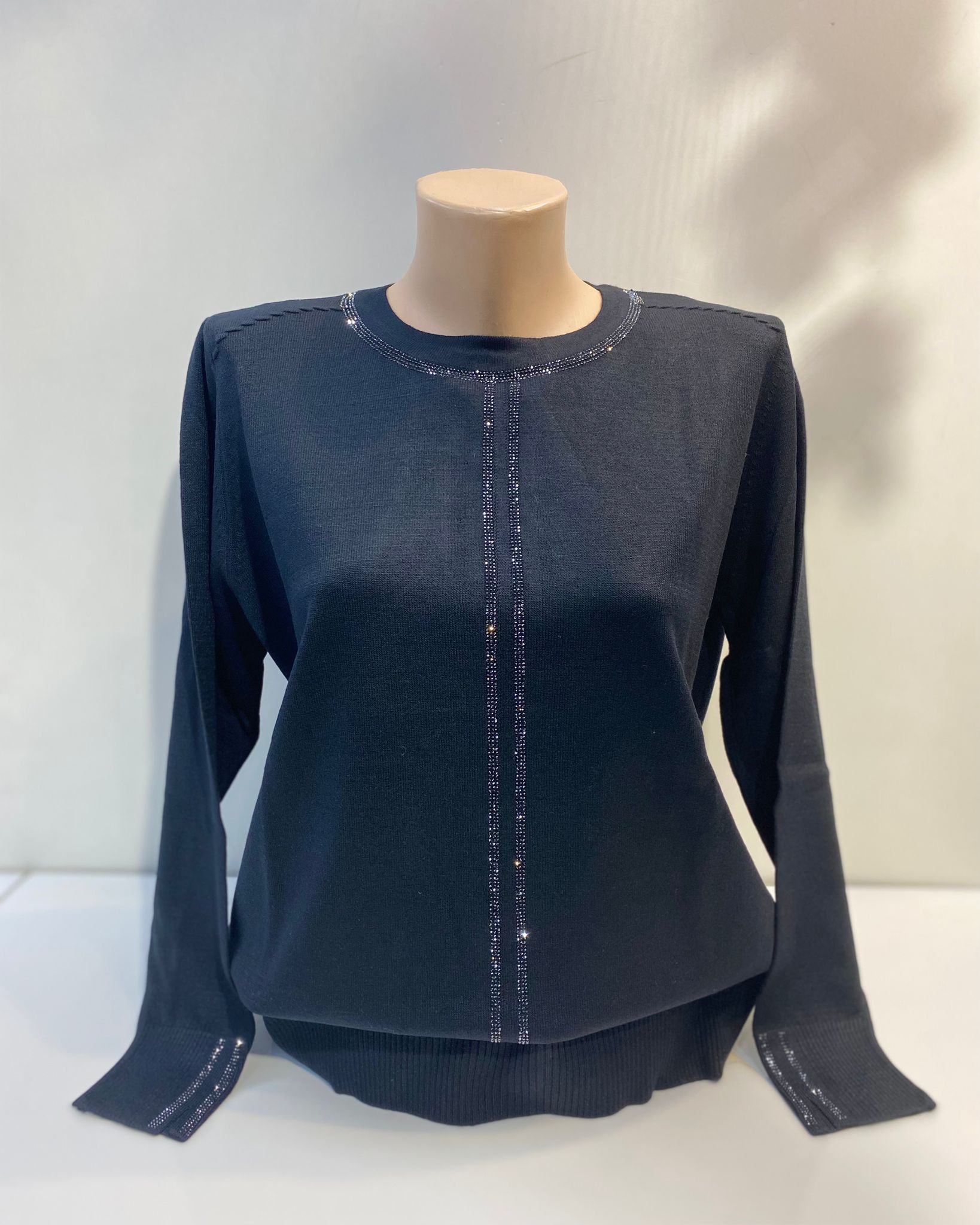 - Günlük Kullanım: Taşlı Triko Kazak'ı skinny jeans ve botlarla kombinleyerek rahat bir günlük görünüm elde edebilirsiniz.