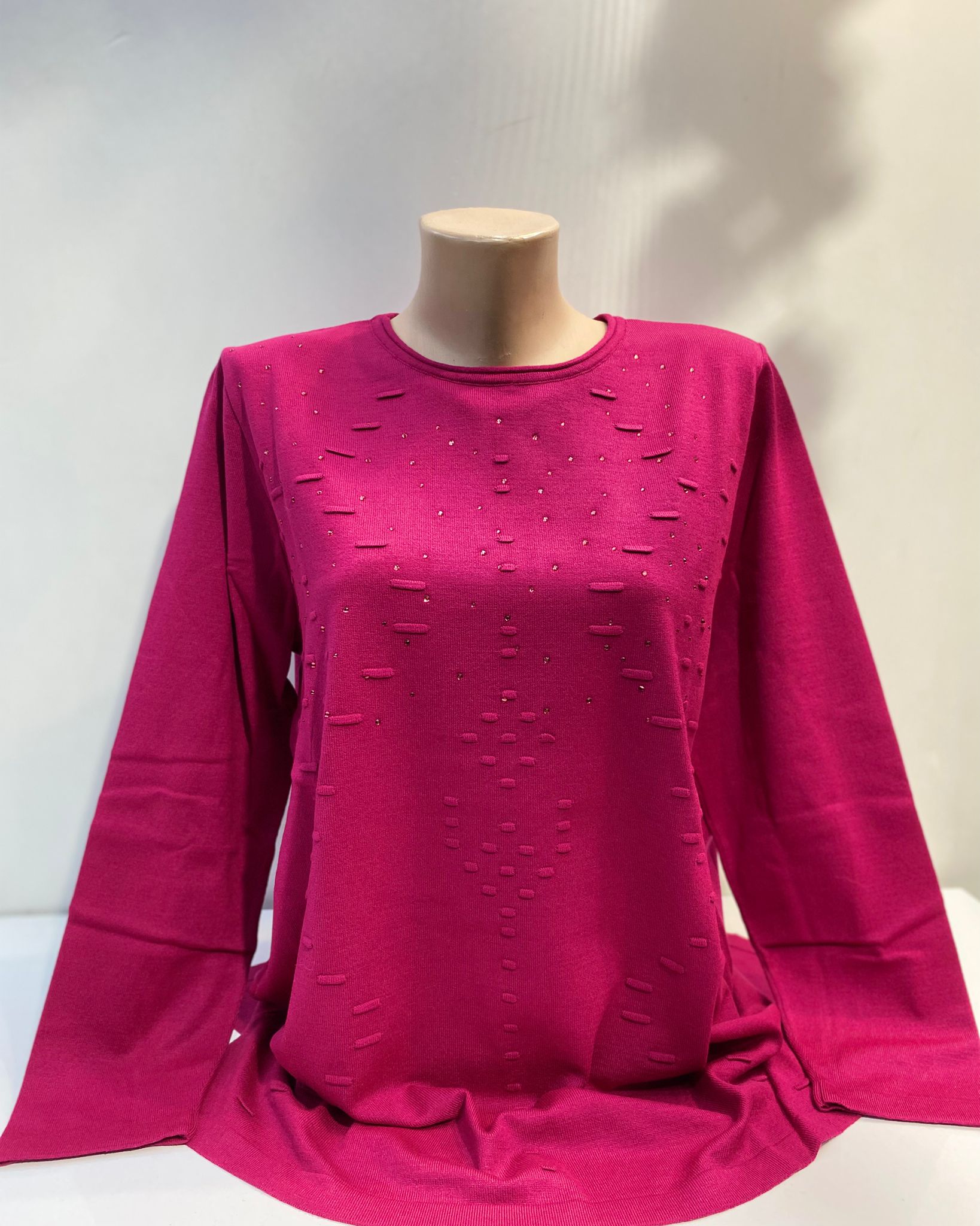 Taşlı Triko Kazak, şıklığı ve kullanışlılığı ile dolabınızda yer alması gereken bir parça. Üstündeki taş detayları, her kıyafeti sıradanlıktan çıkararak özel görünmenize yardımcı olur. Aynı zamanda, akrilik iplikten üretilmiş olması sayesinde oldukça hafif ve sıcak tutan bir yapıya sahiptir. Bu kazak, hem ofis kombinlerinizde hem de günlük sokak stilinizde rahatlıkla kullanılabilir.