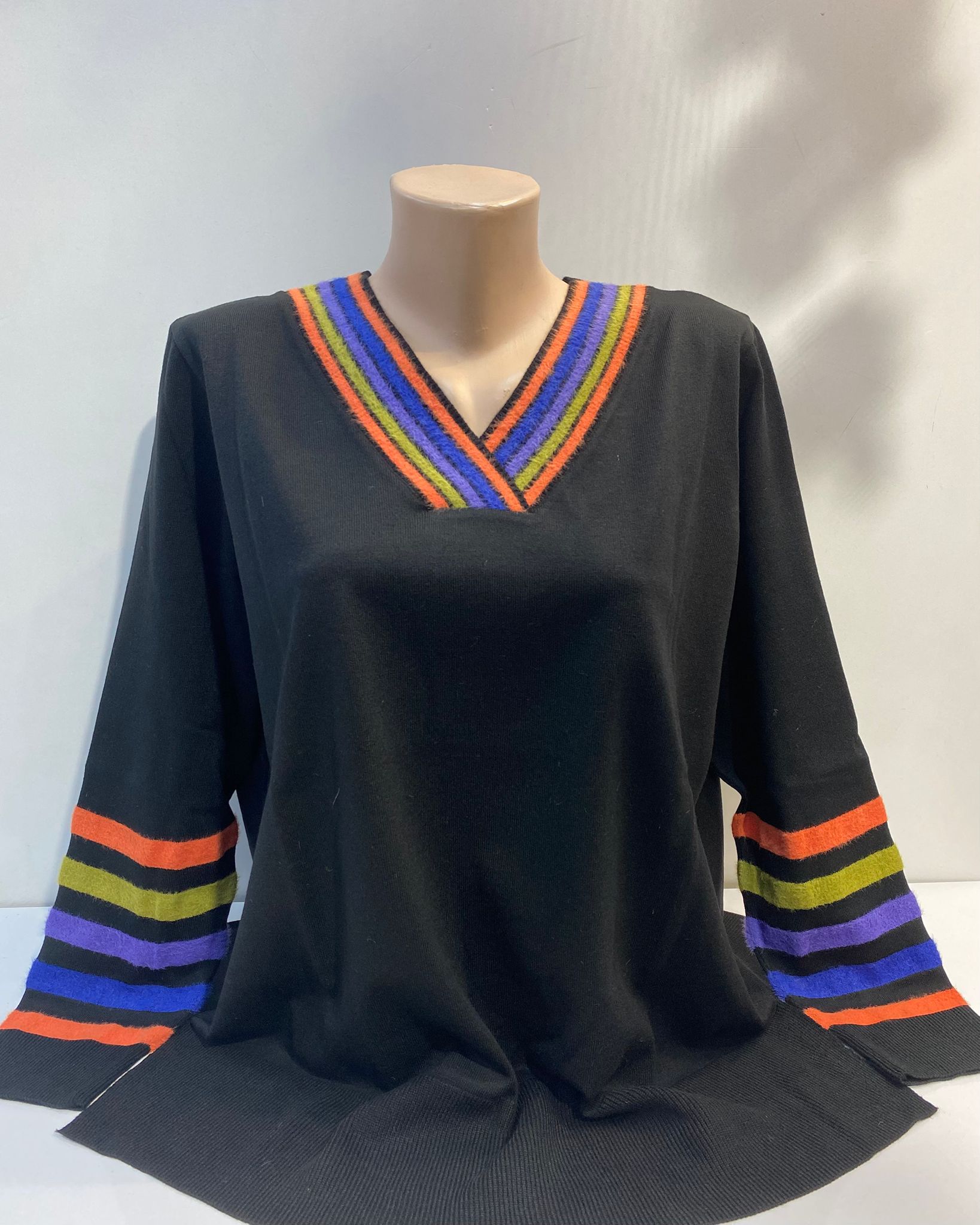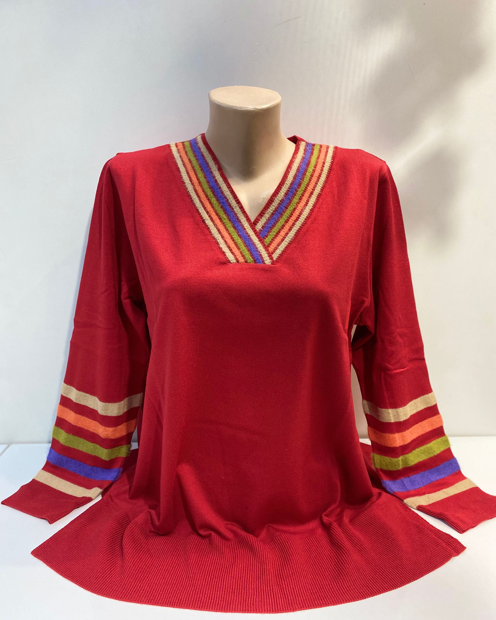 V YAKA ÇİZGİLİ TRİKO BLUZ