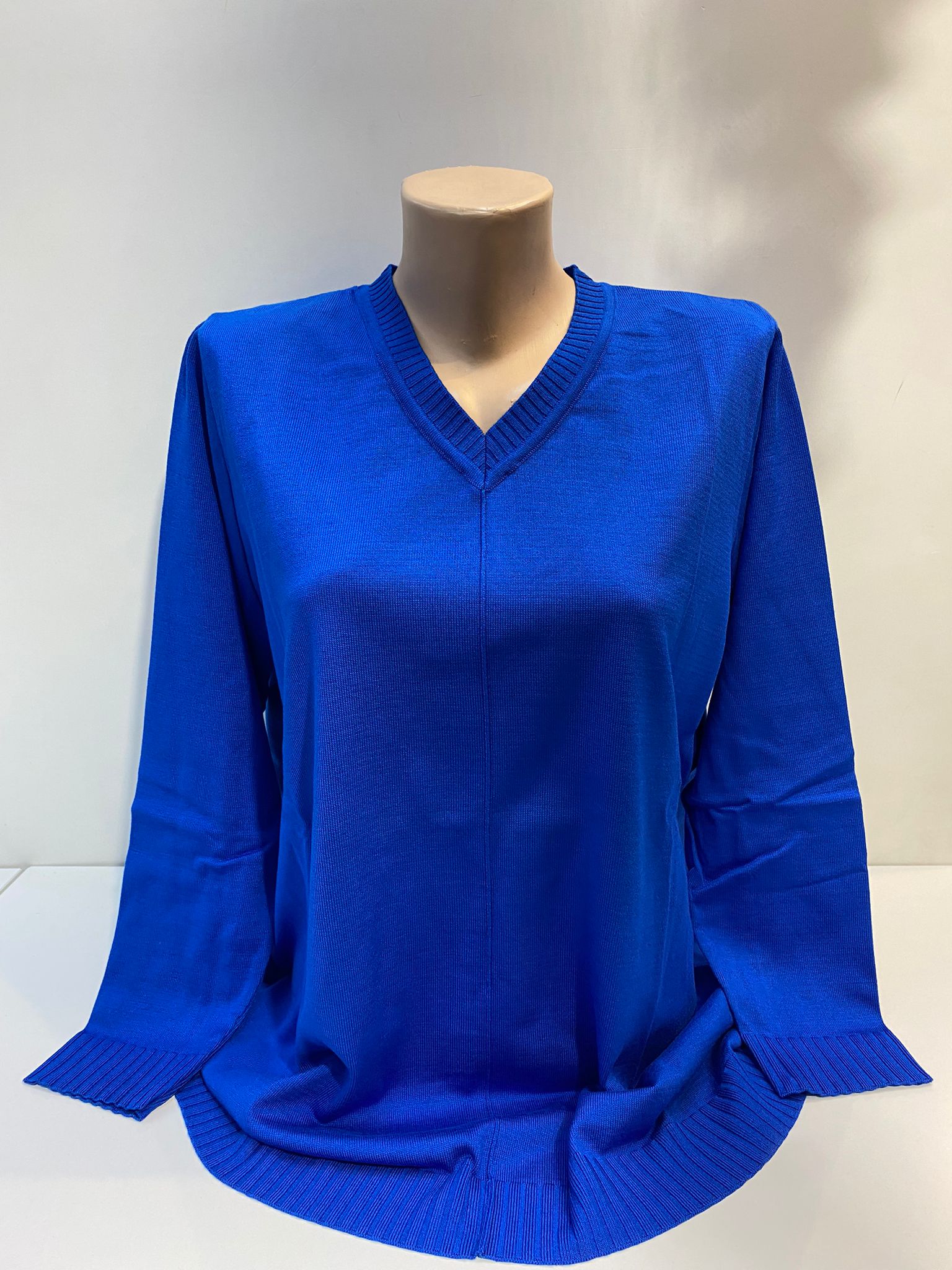 V yaka nervürlü tunik triko hassas programda yıkanabilir Saks L 44,46 XL 48,50 bedenlere uyumlu