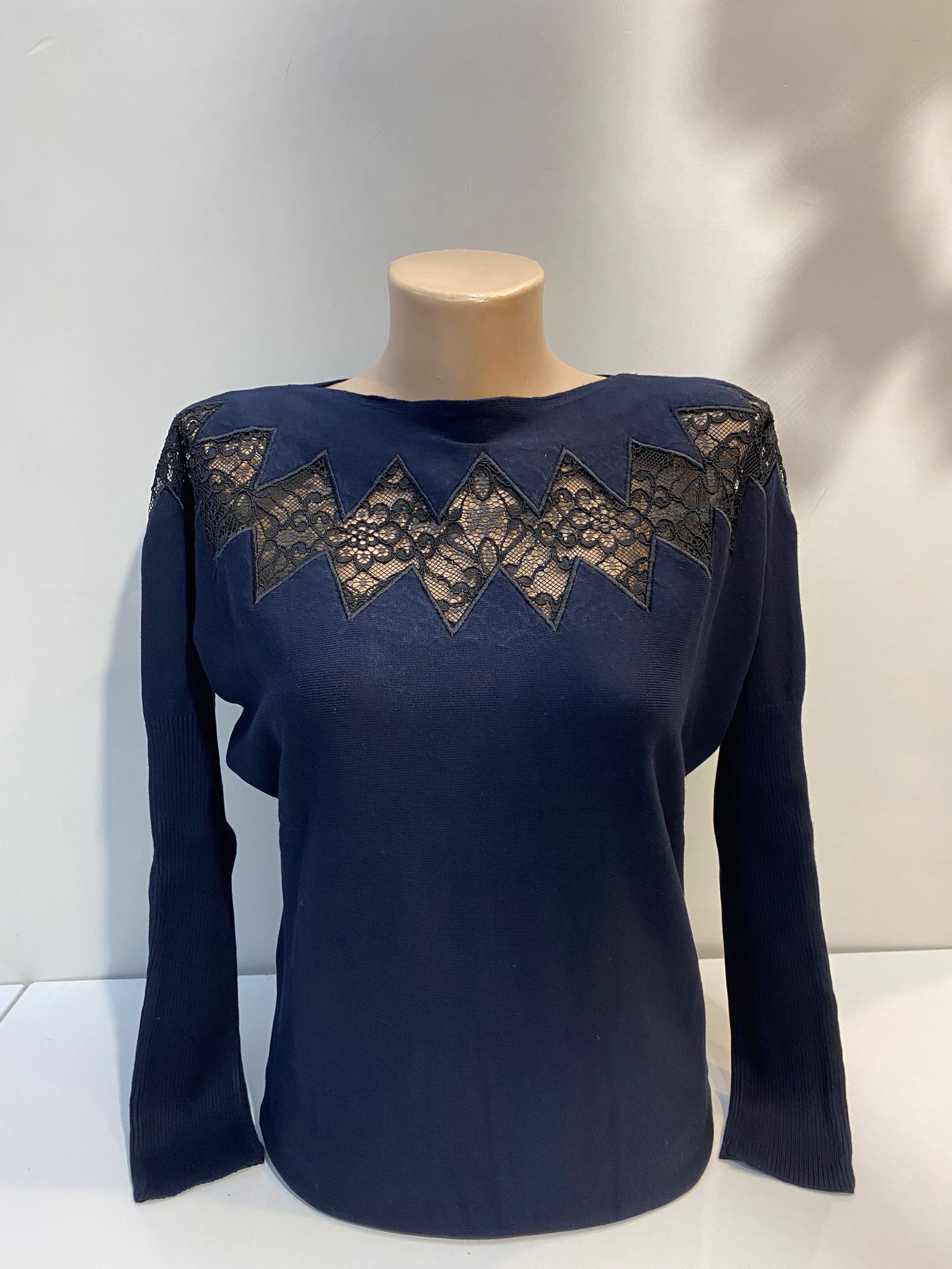 Yarasa kol dantel detay kayık yaka hassas programda yıkanabilir S 38,40 bedenlere uyumlu